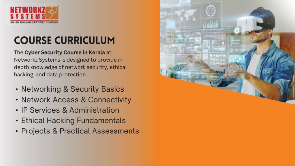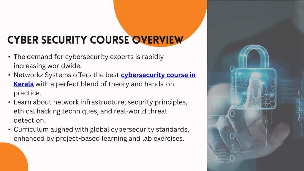 1. CYBER SECURITY COURSES IN KERALA Get Certified in Cyber Security with Networkz Systems • Duration: 3–6 Months • Level: Beginner to Advanced