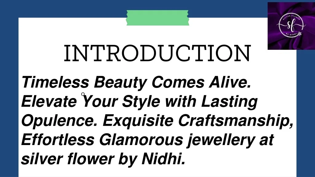 INTRODUCTION Timeless Beauty Comes Alive. Elevate Your Style with Lasting Opulence. Exquisite Craftsmanship, Effortless Glamorous jewellery at silver flower by Nidhi. O