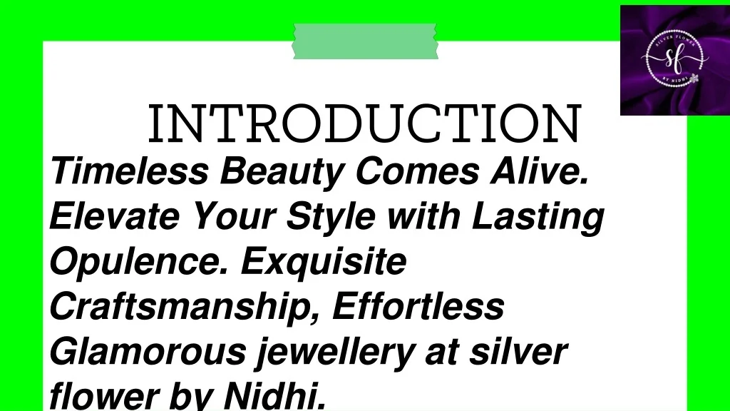 INTRODUCTION Timeless Beauty Comes Alive. Elevate Your Style with Lasting Opulence. Exquisite Craftsmanship, Effortless Glamorous jewellery at silver flower by Nidhi.