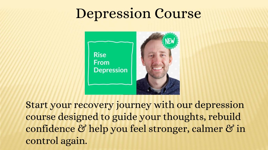 Depression Course Start your recovery journey with our depression course designed to guide your thoughts, rebuild confidence & help you feel stronger, calmer & in control again.