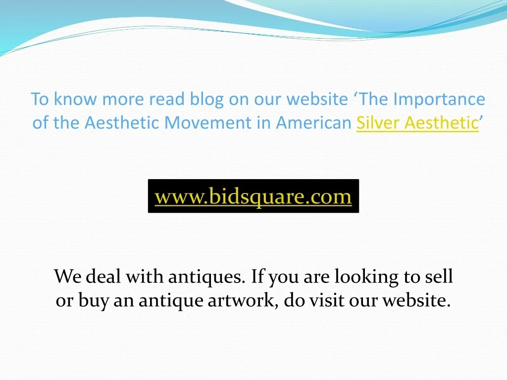 To know more read blog on our website ‘The Importance of the Aesthetic Movement in American Silver Aesthetic’ www.bidsquare.com We deal with antiques. If you are looking to sell or buy an antique artwork, do visit our website.