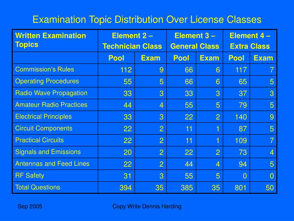 Examination Topic Distribution Over License Classes Copy Write Dennis Harding