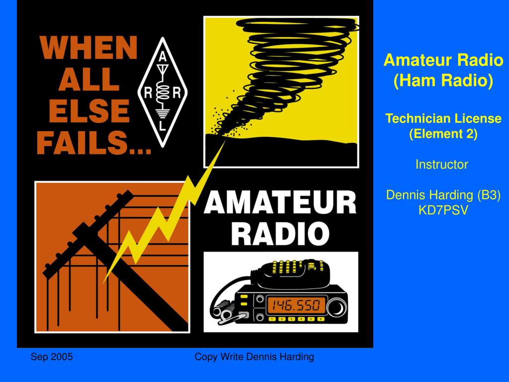Amateur Radio (Ham Radio) Technician License (Element 2) Instructor Dennis Harding (B3) KD7PSV Copy Write Dennis Harding