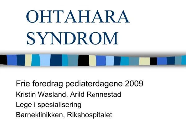 1. OHTAHARA SYNDROM Frie foredrag pediaterdagene 2009