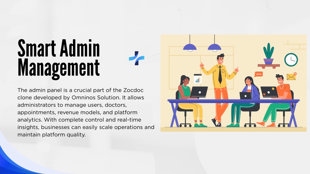 Smart Admin Management The admin panel is a crucial part of the Zocdoc clone developed by Omninos Solution. It allows administrators to manage users, doctors, appointments, revenue models, and platform analytics. With complete control and real-time insights, businesses can easily scale operations and maintain platform quality.