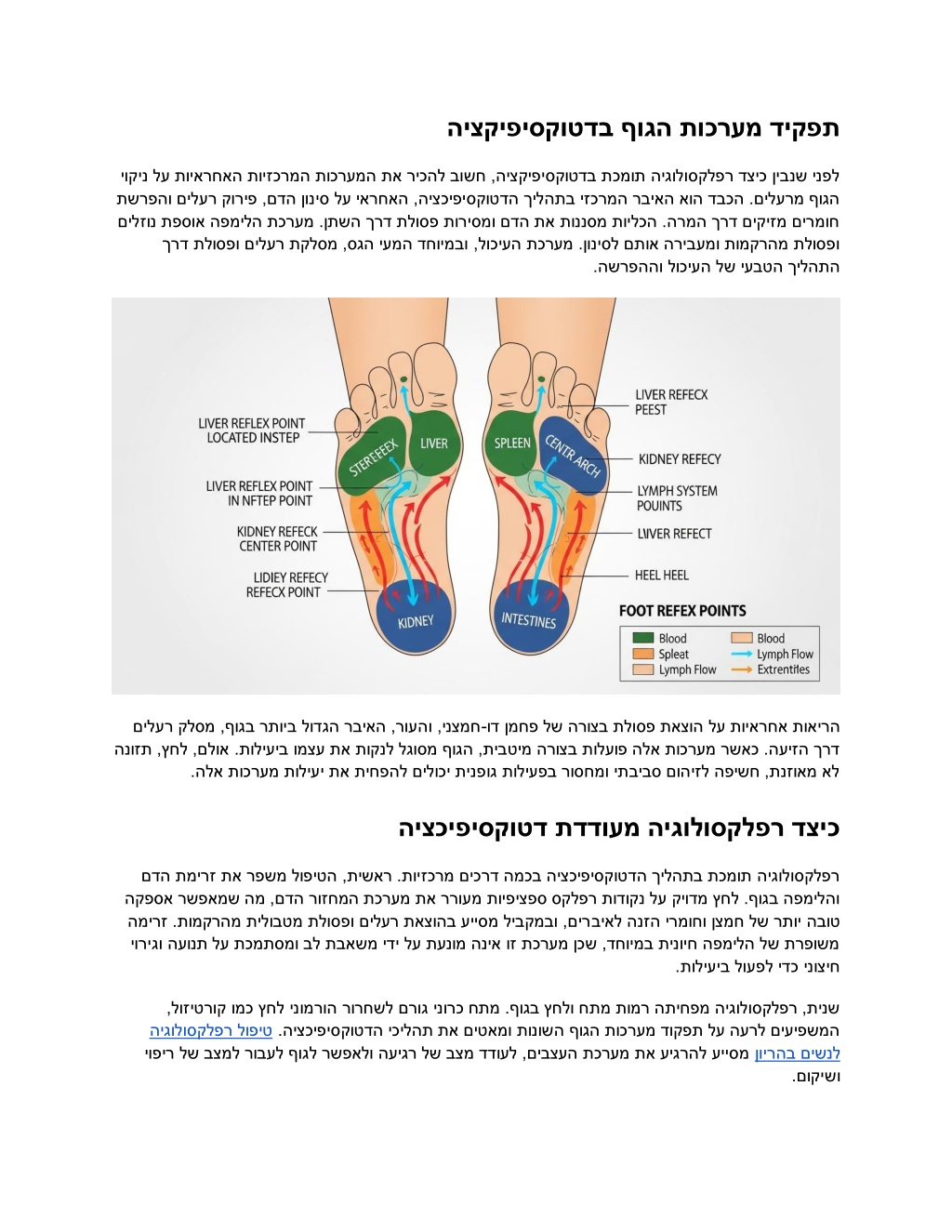 ףוגהו לעופ לופיטהש ךכל יבויח ןמיס השעמל ן ה הלא תובוגת .ןתש תשרפהב תינמז היילע וא םייעמה דוקפתב .םיימוי וא םוי ךות תופלוחו תולק ללכ ךרדב ןה .ומצע תא הקנמ אירב םייח חרוא םע היגולוסקלפר בוליש השיגמ קלחכ רתויב הבוטה הרוצב תלעופ איה ,היצכיפיסקוטדב הכימתל ליעי ילכ איה היגולוסקלפרש תורמל םילער ףוטשל םיעייסמ םימ ןכש ,היצכיפיסקוטדה ךילהתל תיטירק איה עפשב םי לופיט םילבקמ םהבש םימיב רתוי דועו ,םויב םימ תוסוכ הנומש תוחפל תותשל ץלמומ .העיזהו ןתשה ךרד ףוגהמ מ תייתש .תואירבל תיטסילוה .יגולוסקלפר דוקפתל םיצוחנה םיניזמה םירמוחה תא ףוגל תקפסמ םיזר םינובלחו םיאלמ םינגד ,תוקרי ,תוריפב הרישע הנוזת םיכמותכ םיעודי םוכרוכו ןומיל ,ילוקורב ,םוש ,םיילע םיקורי ומכ תונוזמ .היצכיפיסקוטדה תוכרעמ לש יבטימ תוטישה יתש ןכש ,היגולוסקלפרל רדהנ םילשמ תויהל לוכי .םייעבט יופיר יכילהת לש תוררועהו היגרנאה תמירז רופישב תודקמתמ דודשאוב יקיר לופיט .תוילכהו דבכה דוקפתב דחוימב ילה וליפא .םירביאה דוקפתב תכמותו העזה תדדועמ ,הפמילהו םדה תמירז תא תרפשמ הרידס תינפוג תוליעפ הכ ףוגה הנישה ךלהמב ןכש ,תיטירק איה תיתוכיא הניש .יתועמשמ לדבה תושעל הלוכי םויב תוקד .הלילב תועש הנומש דע עבש תוחפל ןושיל ץלמומ .היצכיפיסקוטדו ןוקית לש םיבושח םיכילהת עצבמ 30 ךשמל הנותמ היצכיפיסקוטדל היגולוסקלפרמ תונהיל לוכי ימ ,לוכיע תויעב ,תינורכ תופייעמ םילבוסה םישנא .םישנאה בורל םיאתמה חוטב וא הובג חתמ םע דדומתמש ימ .תיתועמשמ הלקה אוצמל םייושע תוזכרתהב ישוק וא ,םיקרפמו םירירש םיבאכ .םיבצעה תכרעמ לע לופיטה לש העיגרמה העפשהמ תונהיל לוכי הדרח ו ןידע לופיט איה היגולוסקלפר