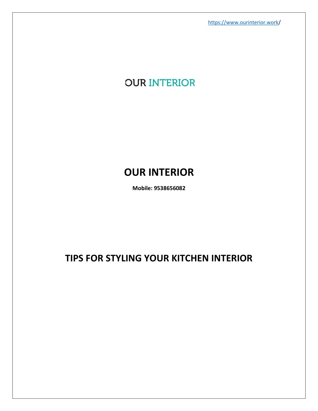 https://www.ourinterior.work/ OUR INTERIOR Mobile: 9538656082 TIPS FOR STYLING YOUR KITCHEN INTERIOR