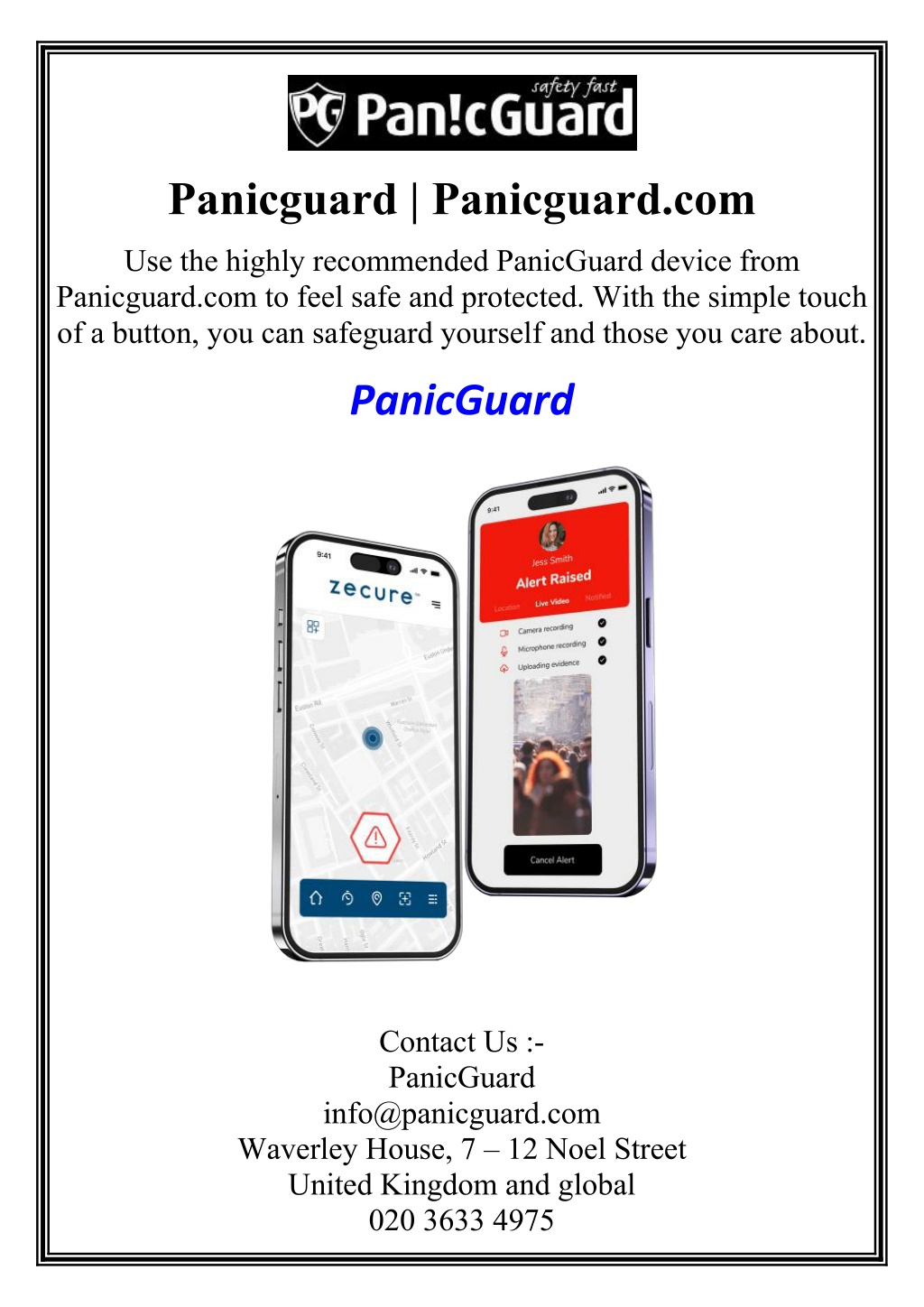 Panicguard | Panicguard.com Use the highly recommended PanicGuard device from Panicguard.com to feel safe and protected. With the simple touch of a button, you can safeguard yourself and those you care about. PanicGuard Contact Us :- PanicGuard info@panicguard.com Waverley House, 7 – 12 Noel Street United Kingdom and global 020 3633 4975