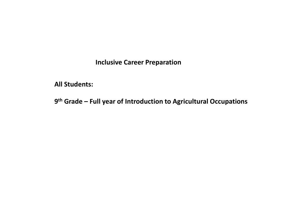 Inclusive Career Preparation All Students: 9th Grade – Full year of Introduction to Agricultural Occupations