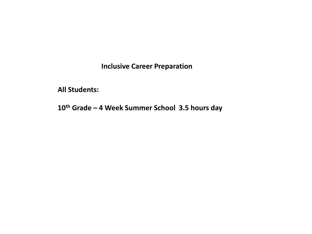 Inclusive Career Preparation All Students: 10th Grade – 4 Week Summer School 3.5 hours day