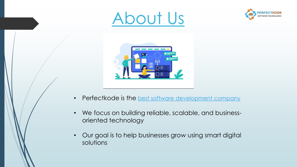About Us • Perfectkode is the best software development company • We focus on building reliable, scalable, and business-oriented technology • Our goal is to help businesses grow using smart digital solutions