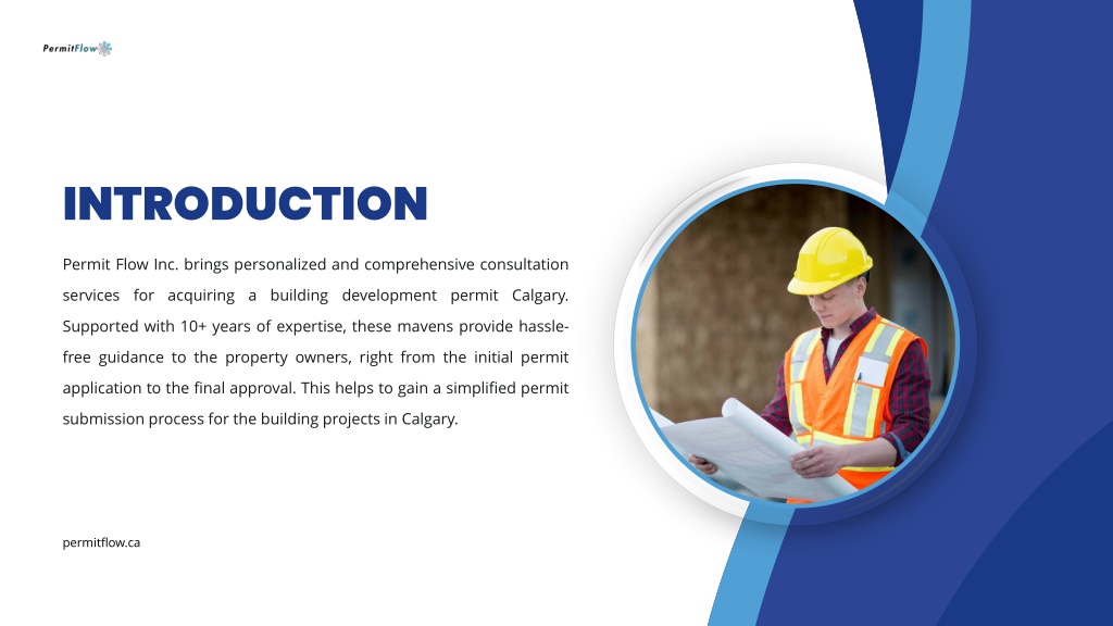 2. INTRODUCTION Permit Flow Inc. brings personalized and comprehensive consultation services for acquiring a building development permit Calgary. Supported with 10+ years of expertise, these mavens provide hassle-free guidance to the property owners, right from the initial permit application to the final approval. This helps to gain a simplified permit submission process for the building projects in Calgary. • permitflow.ca