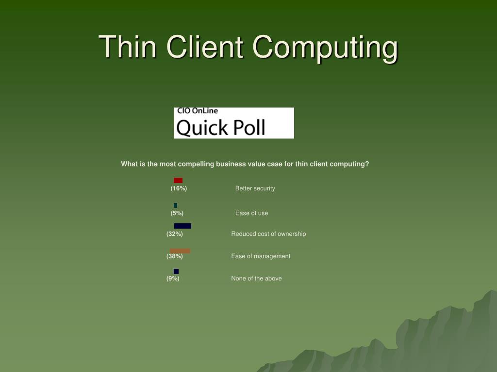 Thin Client Computing What is the most compelling business value case for thin client computing?