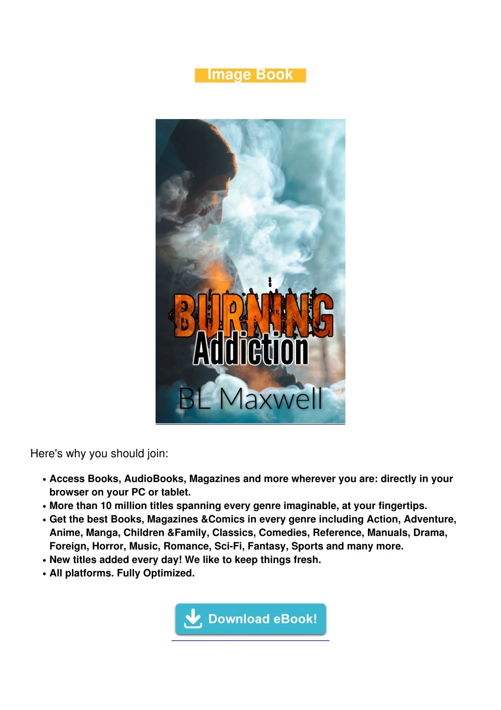 PDF [FREE] DOWNLOAD Burning Addiction TRIAL EBOOK<br><br>Copy Link Start here : https://bit.ly/310book<br><br>Brennan Clayton lived a life of privilege and comfort, until experimenting with drugs in college led to him quitting school to live the life of an addict. His days are spent doing odd jobs for cash to pay for his habit. One night, he overdoses and nearly dies. Doctor Lucas Martel works nightshift in the emergency room at Eureka Hospital. Heu2019s reclusive and brilliant at his job, and heu2019s all too aware that not everything in Eureka is as it seems. Heu2019s also a vampire, one who chooses to blend in with humans rather than feed on them. Something strange is happening to the homeless and addicts on the streets of Eureka; many have gone missing or ended up dead, and others have overdosed on drugs so strong, no human cure can counteract them. Not normally concerned with human tragedies, the vampires canu2019t stand back and let this play out, or they risk exposing their world to the humans. Brennan must face his demons, and Lucas will discover many things about himself, and what he believes to be true: a seedy underground of rogue vampires and drugs that must be stopped, at any cost. *Warning: contains references to drug use and abuse.<br><br>Online PDF Burning Addiction, Read PDF Burning Addiction, Download PDF Burning Addiction, free download Burning Addiction, Burning Addiction download free, download book Burning Addiction, ebook download Burning Addiction, Full PDF Burning Addiction, All Ebook Burning Addiction, PDF and EPUB Burning Addiction, PDF ePub Mobi Burning Addiction, Reading PDF Burning Addiction, Book PDF Burning Addiction, read online Burning Addiction, Burning Addiction B.L. Maxwell pdf, by B.L. Maxwell Burning Addiction, book pdf Burning Addiction, by B.L. Maxwell pdf Burning Addiction,<br>