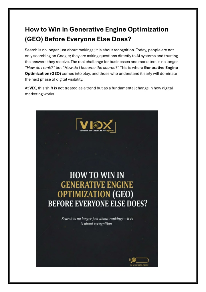 How to Win in Generative Engine Optimization