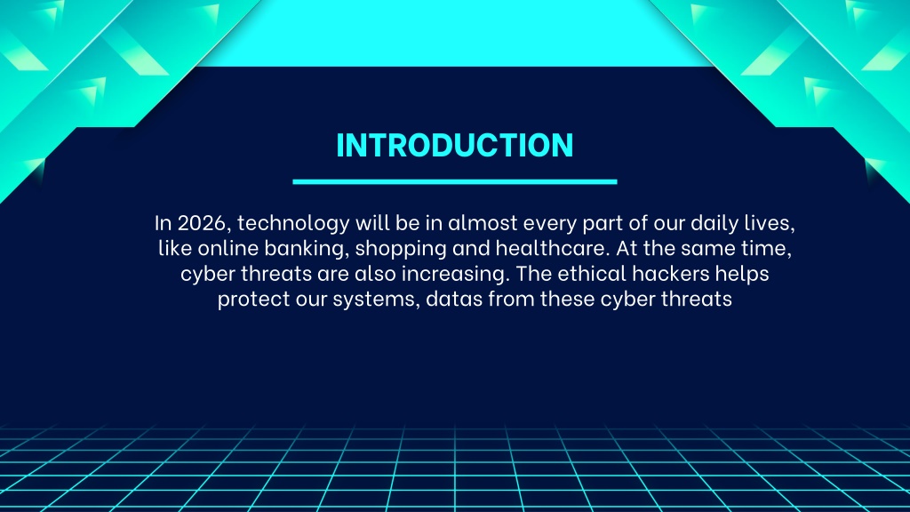 INTRODUCTION In 2026, technology will be in almost every part of our daily lives, like online banking, shopping and healthcare. At the same time, cyber threats are also increasing. The ethical hackers helps protect our systems, datas from these cyber threats