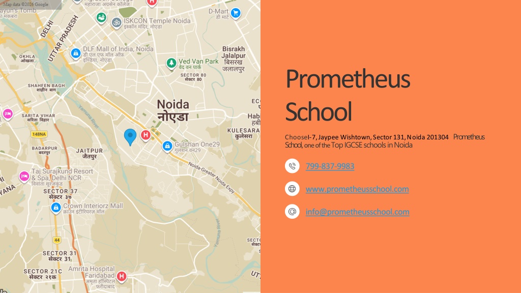 Prometheus School ChooseI-7, Jaypee Wishtown, Sector 131, Noida 201304 Prometheus School, one of the Top IGCSE schools in Noida 799-837-9983 www.prometheusschool.com info@prometheusschool.com