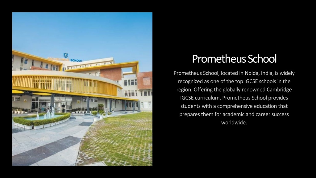 Prometheus School at a Glance Student-centric teaching approach Internationally benchmarked curriculum Experienced global educators Strong academic outcomes Prometheus School's combination of internationally benchmarked curriculum, experienced global educators, student- centric approach, and strong academic outcomes makes it a preferred choice among the top IGCSE schools in Noida.