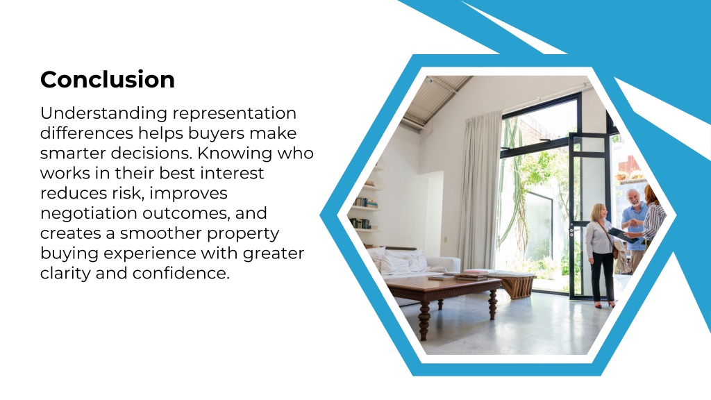 Conclusion Understanding representation differences helps buyers make smarter decisions. Knowing who works in their best interest reduces risk, improves negotiation outcomes, and creates a smoother property buying experience with greater clarity and confidence.