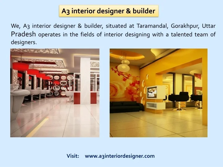 A3 interior designer & builder We, A3 interior designer & builder, situated at Taramandal, Gorakhpur, Uttar Pradesh operates in the fields of interior designing with a talented team of designers. Visit: www.a3interiordesigner.com