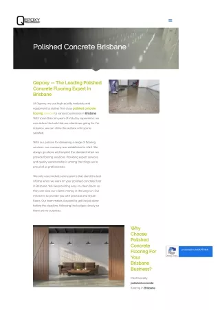 Polished Concrete Brisbane Polished Concrete Brisbane Qepoxy — The Leading Polished Qepoxy — The Leading Polished Concrete Flooring Expert In Concrete Flooring Expert In Brisbane Brisbane At Qepoxy, we use high-quality materials and equipment to deliver 몭rst-class polished concrete polished concrete 몭ooring 몭ooring services to various businesses in Brisbane Brisbane. With more than ten years of industry experience, we can deliver the look that our clients are going for. For instance, we can shine the surface until you’re satis몭ed. With our passion for delivering a range of 몭ooring services, our company was established in 2016. We always go above and beyond the standard when we provide 몭ooring solutions. Providing expert services and quality workmanship is among the things we’re proud of as professionals. We only use products and systems that stand the test of time when we work on your polished concrete 몭oor in Brisbane. We like providing easy-to-clean 몭oors as they can save our clients’ money in the long run. Our mission is to provide you with practical and stylish 몭oors. Our team makes it a point to get the job done before the deadline, following the budget closely so there are no surprises. Why Why Choose Choose Polished Polished Concrete Concrete Flooring For Flooring For Your Your Brisbane Brisbane Business? Business? protected by reCAPTCHA - Privacy - Terms Mechanically polished concrete polished concrete 몭ooring in Brisbane Brisbane