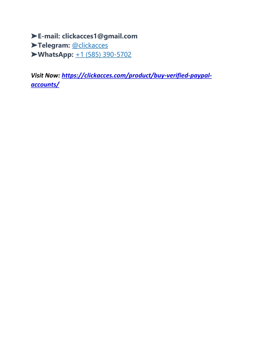 ➤ ➤E-mail: clickacces1@gmail.com ➤ ➤Telegram: @clickacces ➤ ➤WhatsApp: +1 (585) 390-5702 Visit Now: https://clickacces.com/product/buy-verified-paypal- accounts/