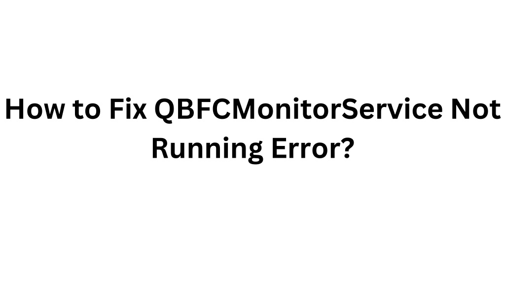 Solution 1: Restart the QBFCMonitorService • Press Windows + R and type services.msc. • Locate QBFCMonitorService in the list. • Right-click → Restart. • If the service is disabled, set it to Automatic.