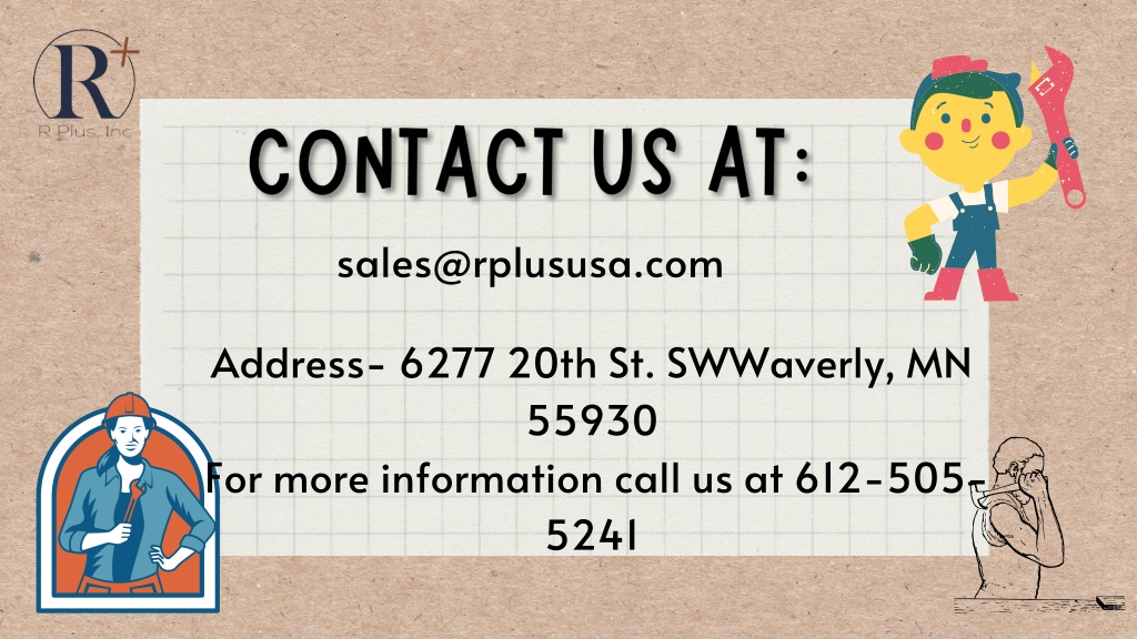 sales@rplususa.com Address- 6277 20th St. SWWaverly, MN 55930 For more information call us at 612-505- 5241