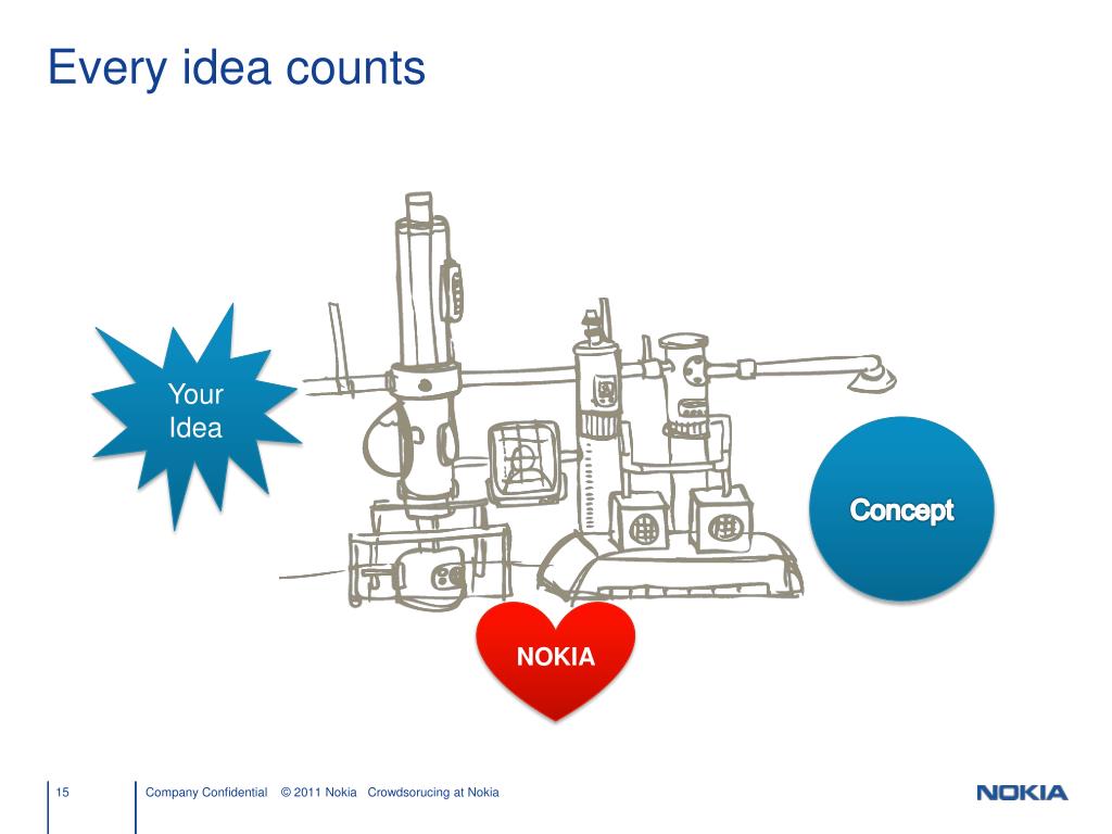 Every idea counts Your Idea Concept NOKIA Company Confidential © 2011 Nokia Crowdsorucing at Nokia