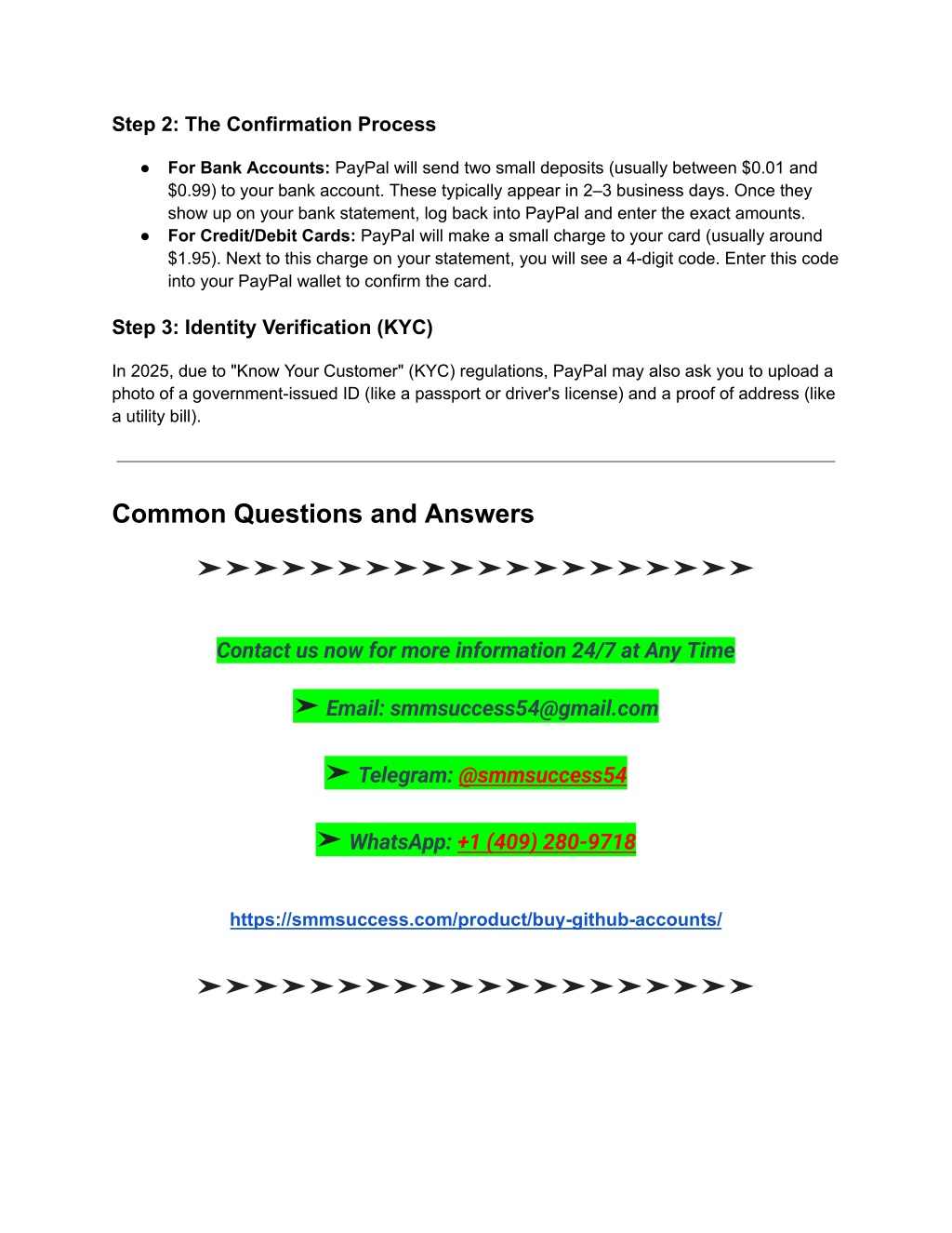 5. Step 2: The Confirmation Process ● For Bank Accounts: PayPal will send two small deposits (usually between $0.01 and $0.99) to your bank account. These typically appear in 2–3 business days. Once they show up on your bank statement, log back into PayPal and enter the exact amounts. ● For Credit/Debit Cards: PayPal will make a small charge to your card (usually around $1.95). Next to this charge on your statement, you will see a 4-digit code. Enter this code into your PayPal wallet to confirm the card. Step 3: Identity Verification (KYC) In 2025, due to "Know Your Customer" (KYC) regulations, PayPal may also ask you to upload a photo of a government-issued ID (like a passport or driver's license) and a proof of address (like a utility bill). Common Questions and Answers ➤➤➤➤➤➤➤➤➤➤➤➤➤➤➤➤➤➤➤➤ Contact us now for more information 24/7 at Any Time ➤ Email: smmsuccess54@gmail.com ➤ Telegram: @smmsuccess54 ➤ WhatsApp: +1 (409) 280-9718 https://smmsuccess.com/product/buy-github-accounts/ ➤➤➤➤➤➤➤➤➤➤➤➤➤➤➤➤➤➤➤➤