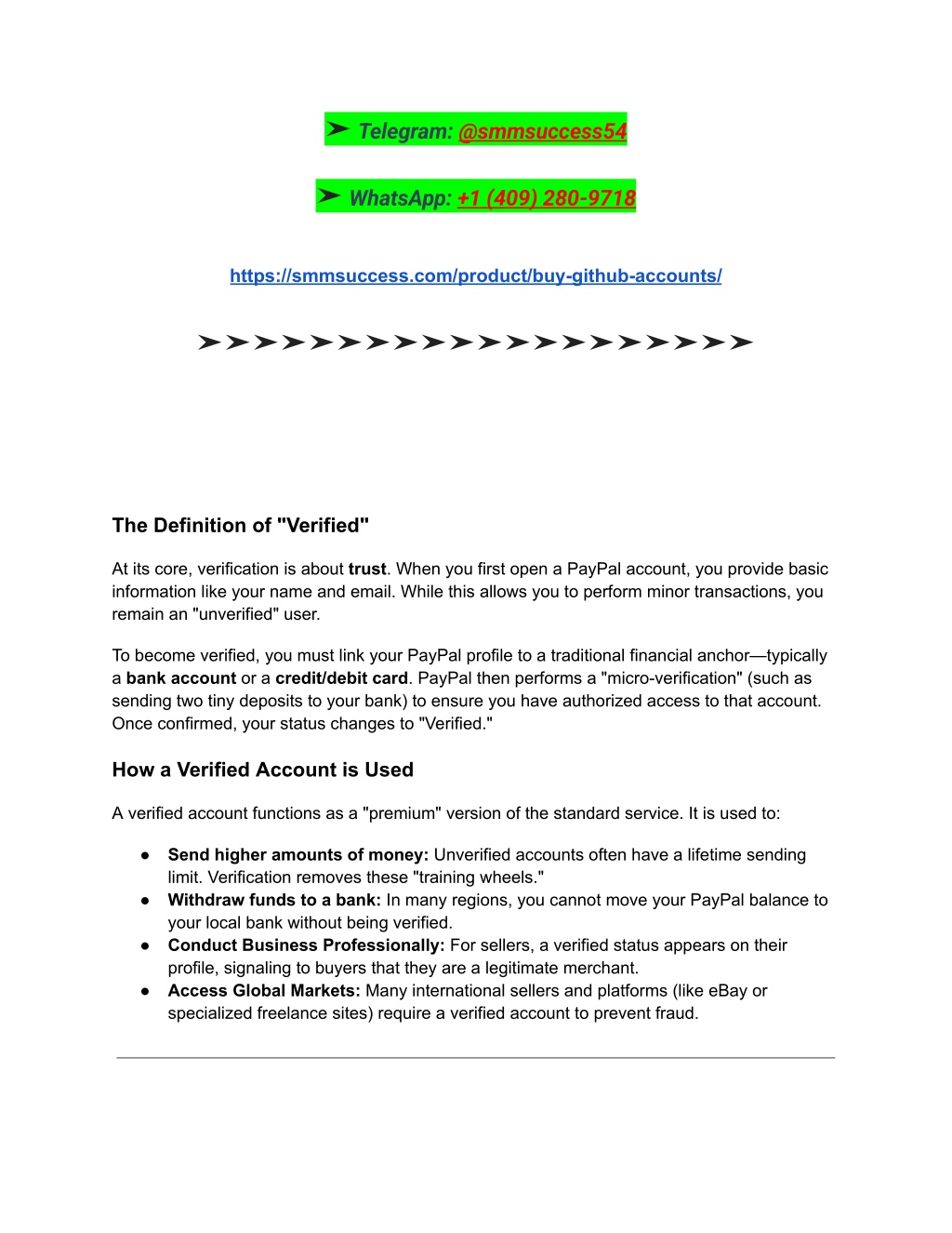 3. Why You Should Verify Your PayPal Account If you only use PayPal once a year to send $20 to a friend, verification might not seem urgent. However, for anyone using the platform for shopping, freelancing, or business, the benefits are substantial. 1. Increased Transaction Limits Unverified accounts are subject to strict limits on how much they can send, receive, and withdraw. For example, in many countries, an unverified user might be capped at a total withdrawal of $500. Once verified, these limits are either significantly raised or removed entirely, allowing you to move thousands of dollars per transaction. 2. Enhanced Security and Lower Fraud Risk The verification process acts as a deterrent for scammers. Since a verified account is tied to a real bank or card, it creates a paper trail that discourages illicit activity. This protects not just you, but the entire PayPal ecosystem. 3. Faster Access to Funds ➤➤➤➤➤➤➤➤➤➤➤➤➤➤➤➤➤➤➤➤ Contact us now for more information 24/7 at Any Time ➤ Email: smmsuccess54@gmail.com ➤ Telegram: @smmsuccess54 ➤ WhatsApp: +1 (409) 280-9718 https://smmsuccess.com/product/buy-github-accounts/ ➤➤➤➤➤➤➤➤➤➤➤➤➤➤➤➤➤➤➤➤