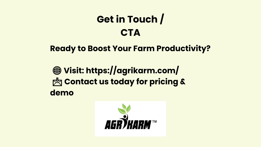 Get in Touch / CTA Ready to Boost Your Farm Productivity? 🌐 Visit: https://agrikarm.com/ 📩 Contact us today for pricing & demo