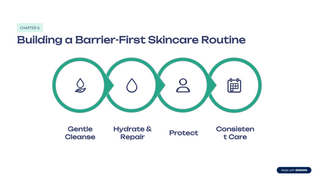 CHAPTER 6 Building a Barrier-First Skincare Routine Gentle Cleanse Hydrate & Repair Consistent Care Protect