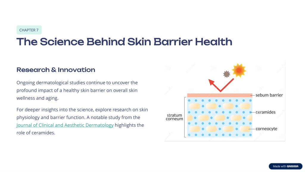 CHAPTER 7 The Science Behind Skin Barrier Health Research & Innovation Ongoing dermatological studies continue to uncover the profound impact of a healthy skin barrier on overall skin wellness and aging. For deeper insights into the science, explore research on skin physiology and barrier function. A notable study from the Journal of Clinical and Aesthetic Dermatology highlights the role of ceramides.