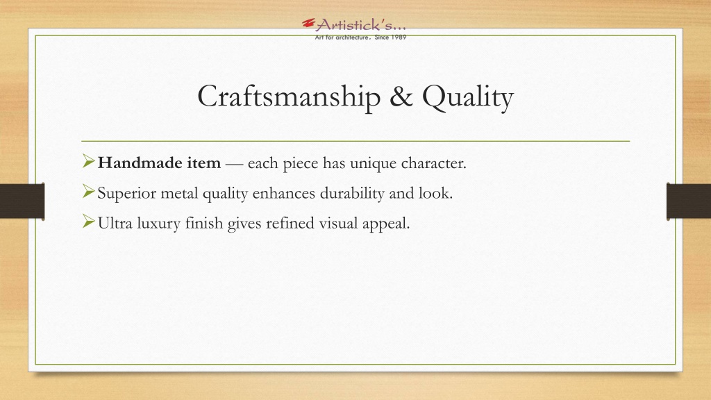 Craftsmanship & Quality • Handmade item — each piece has unique character. • Superior metal quality enhances durability and look. • Ultra luxury finish gives refined visual appeal.