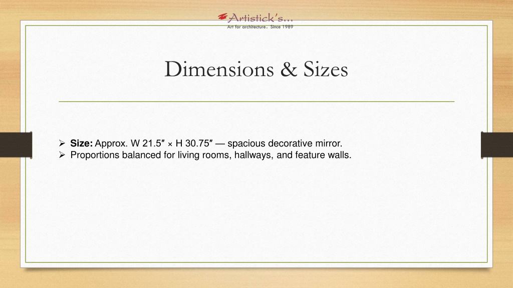 Dimensions & Sizes • Size: Approx. W 21.5″ × H 30.75″ — spacious decorative mirror. • Proportions balanced for living rooms, hallways, and feature walls.
