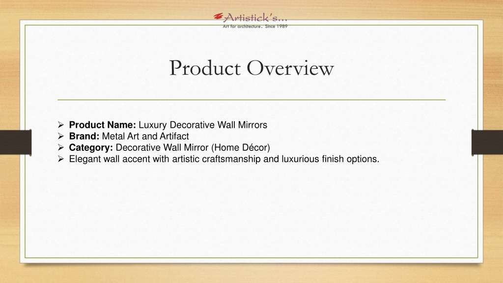 Product Overview • Product Name: Luxury Decorative Wall Mirrors • Brand: Metal Art and Artifact • Category: Decorative Wall Mirror (Home Décor) • Elegant wall accent with artistic craftsmanship and luxurious finish options.