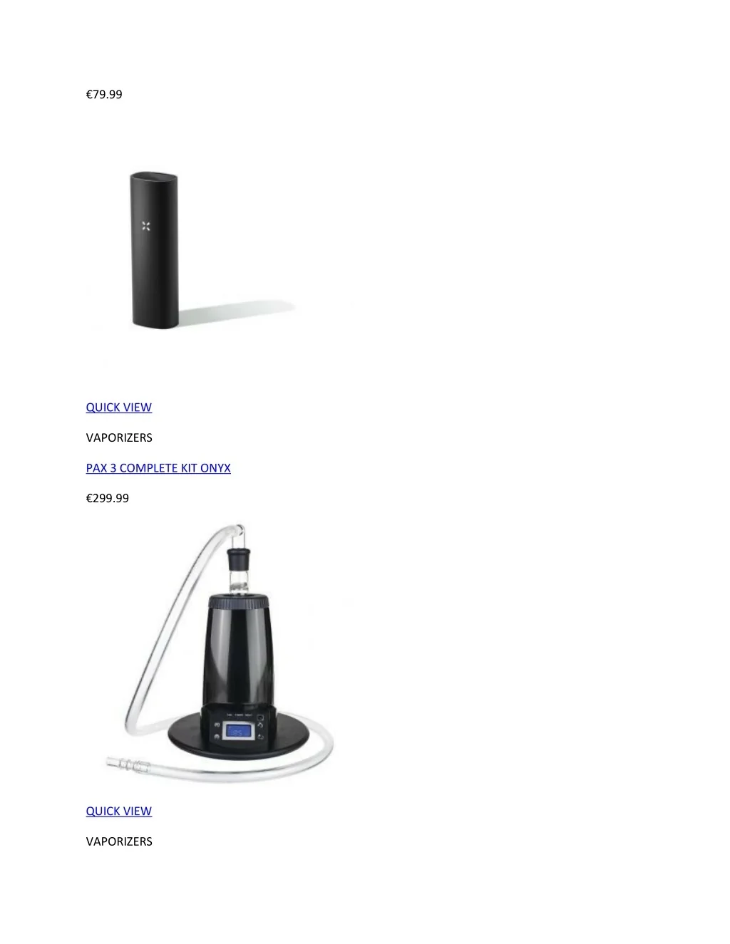 €79.99 QUICK VIEW VAPORIZERS PAX 3 COMPLETE KIT ONYX €299.99 QUICK VIEW VAPORIZERS