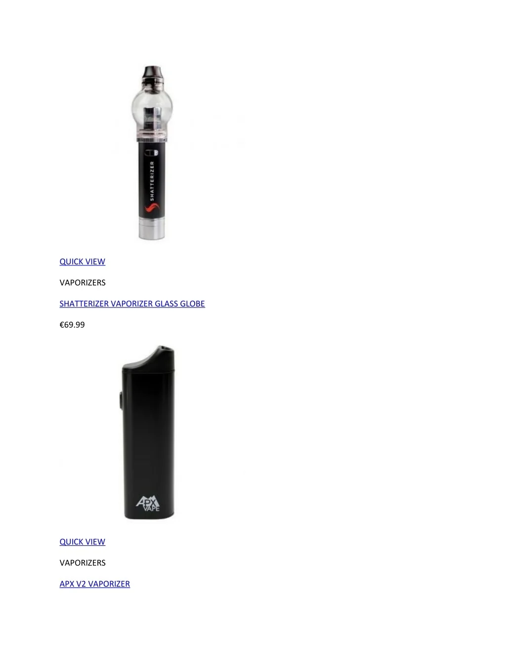 QUICK VIEW VAPORIZERS SHATTERIZER VAPORIZER GLASS GLOBE €69.99 QUICK VIEW VAPORIZERS APX V2 VAPORIZER