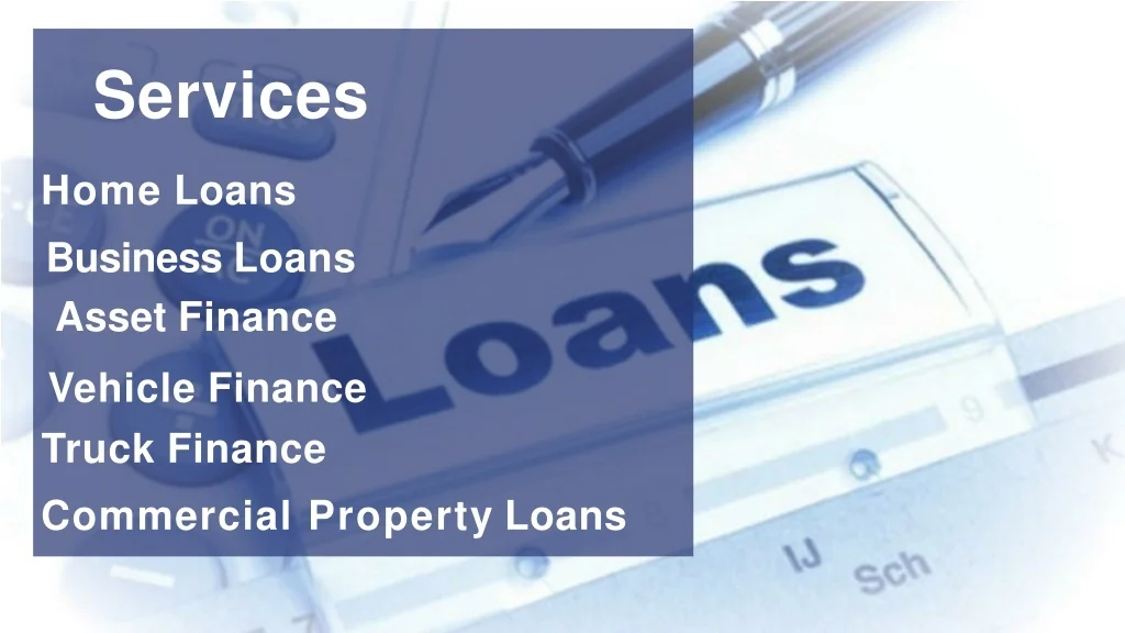 HomeLoans Business Loans AssetFinance VehicleFinance TruckFinance Commercial PropertyLoans Services