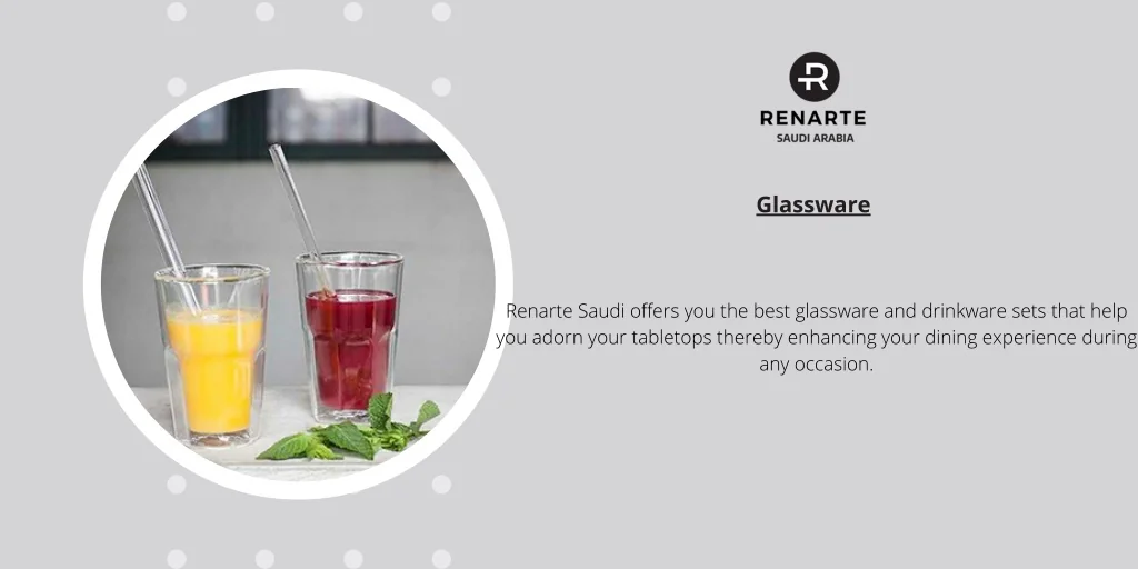 Glassware Renarte Saudi offers you the best glassware and drinkware sets that help you adorn your tabletops thereby enhancing your dining experience during any occasion.