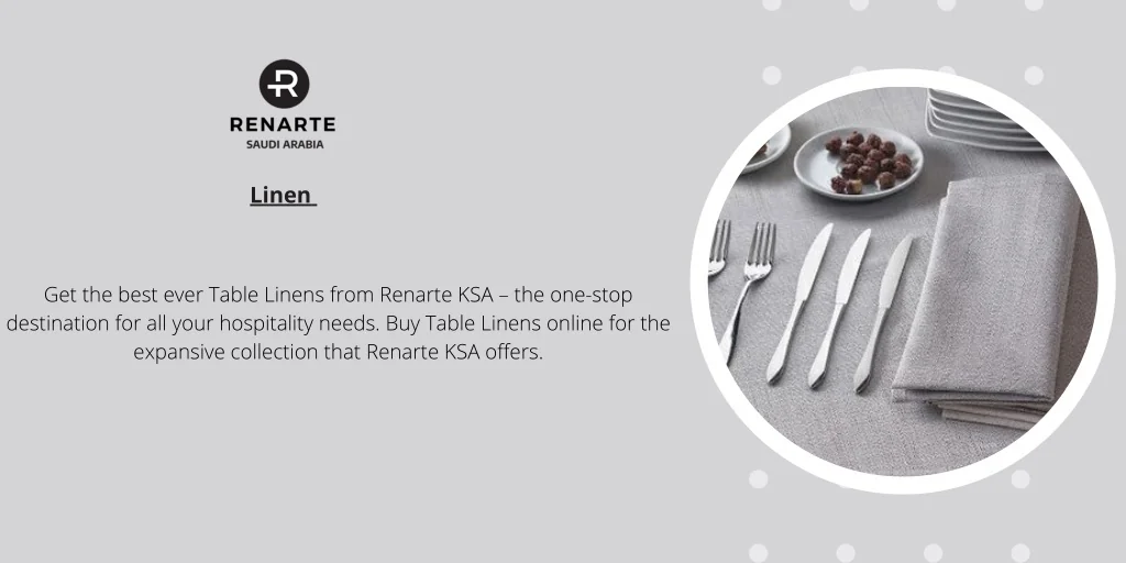 Linen Get the best ever Table Linens from Renarte KSA – the one-stop destination for all your hospitality needs. Buy Table Linens online for the expansive collection that Renarte KSA offers.