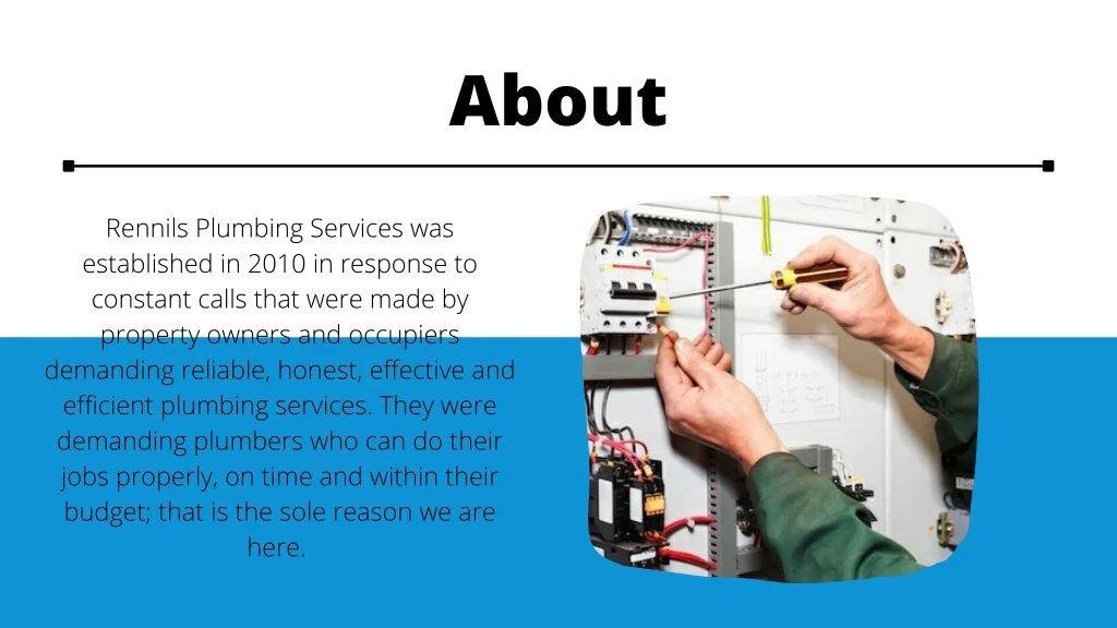 About Rennils Plumbing Services was established in 2010 in response to constant calls that were made by property owners and occupiers demanding reliable, honest, effective and efficient plumbing services. They were demanding plumbers who can do their jobs properly, on time and within their budget; that is the sole reason we are here.