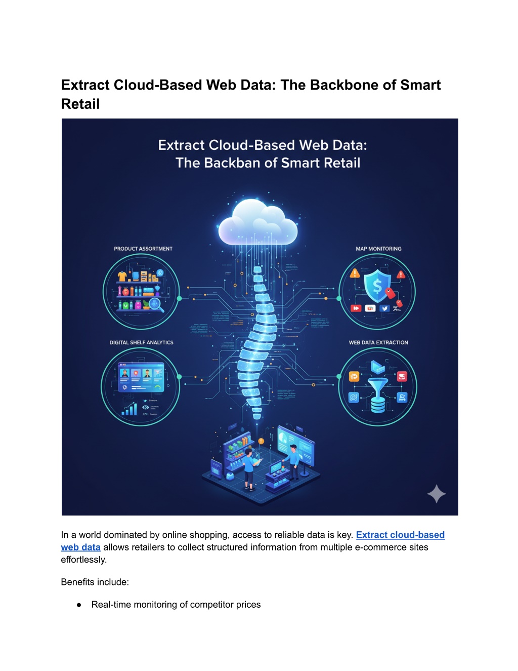Extract Cloud-Based Web Data: The Backbone of Smart Retail In a world dominated by online shopping, access to reliable data is key. Extract cloud-based web data allows retailers to collect structured information from multiple e-commerce sites effortlessly. Benefits include: ● Real-time monitoring of competitor prices
