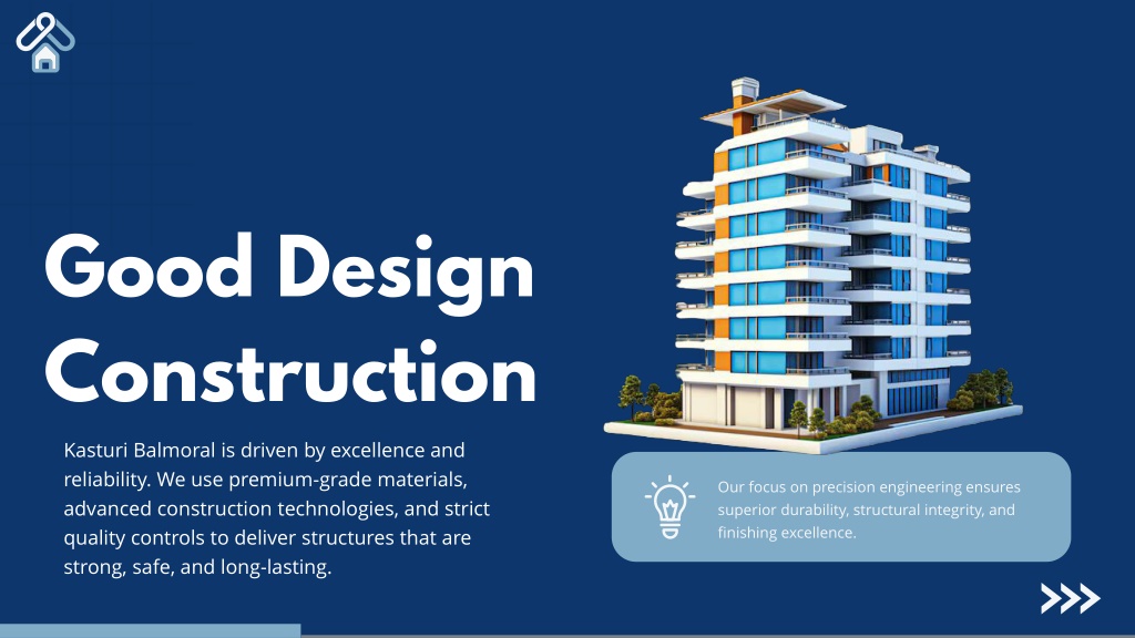 Good Design Construction Kasturi Balmoral is driven by excellence and reliability. We use premium-grade materials, advanced construction technologies, and strict quality controls to deliver structures that are strong, safe, and long-lasting. Our focus on precision engineering ensures superior durability, structural integrity, and finishing excellence.