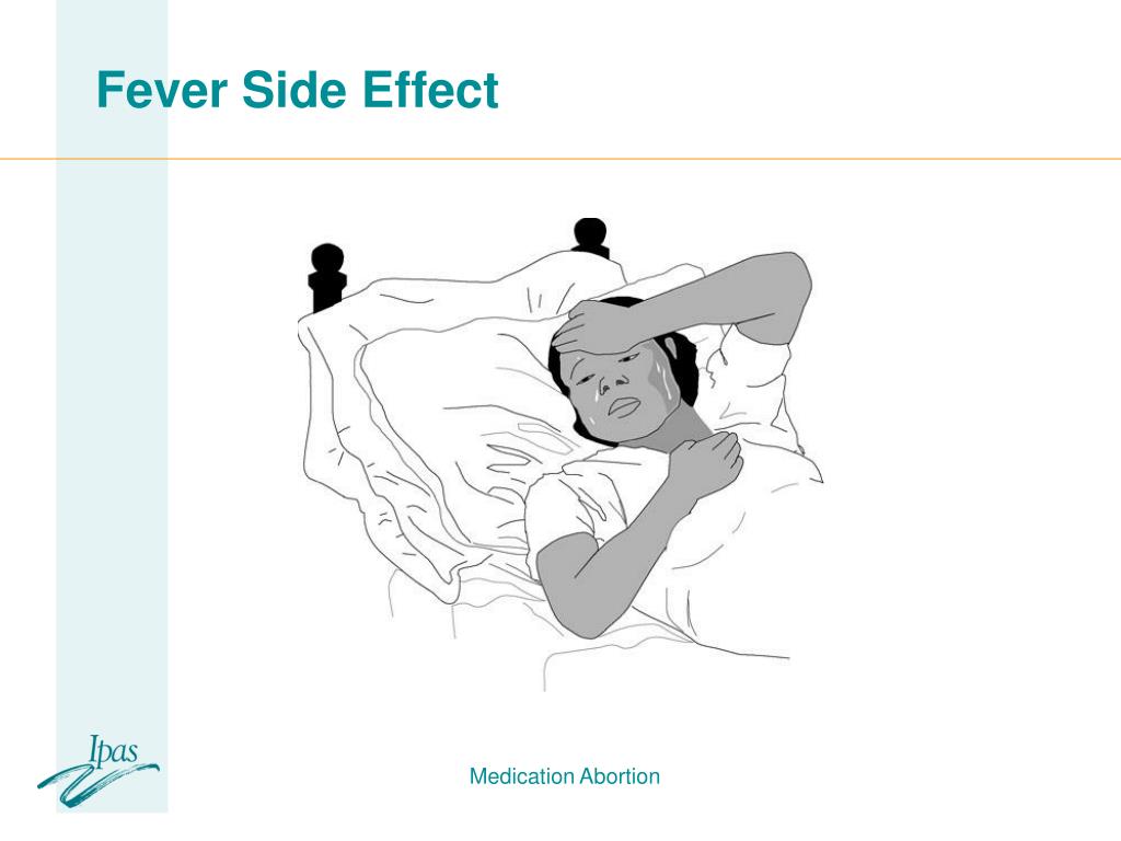Warning Signs During or After Abortion • Excessive bleeding (for example, soaking more than two or three thick pads per hour for two consecutive hours) • Persistent fever of 38C/100.4F or higher or fever beginning more than eight hours after taking misoprostol • No bleeding within 24 hours of taking misoprostol