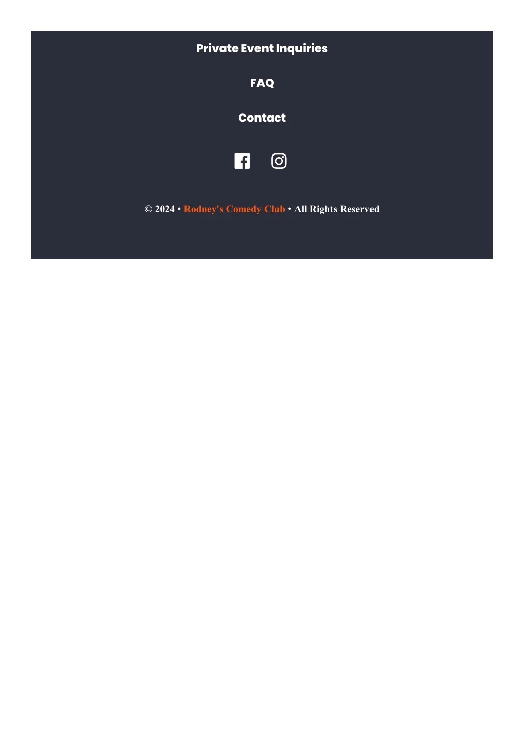 Private Event Inquiries FAQ Contact © 2024 Rodney's Comedy Club All Rights Reserved