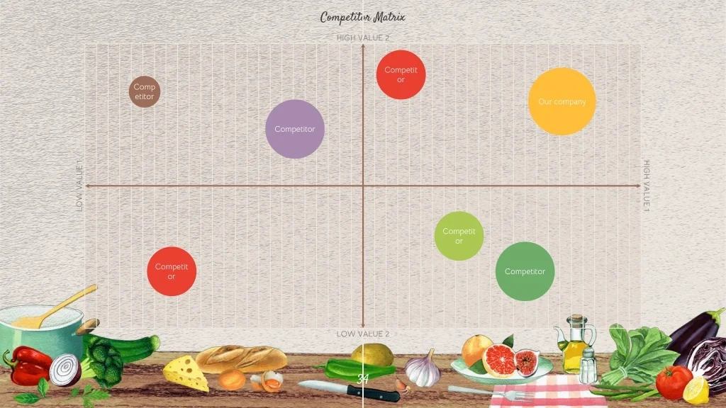 Competitor Matrix HIGH VALUE 2 Competitor Our company Competitor Competitor LOW VALUE 1 HIGH VALUE 1 Competitor Competitor Competitor LOW VALUE 2