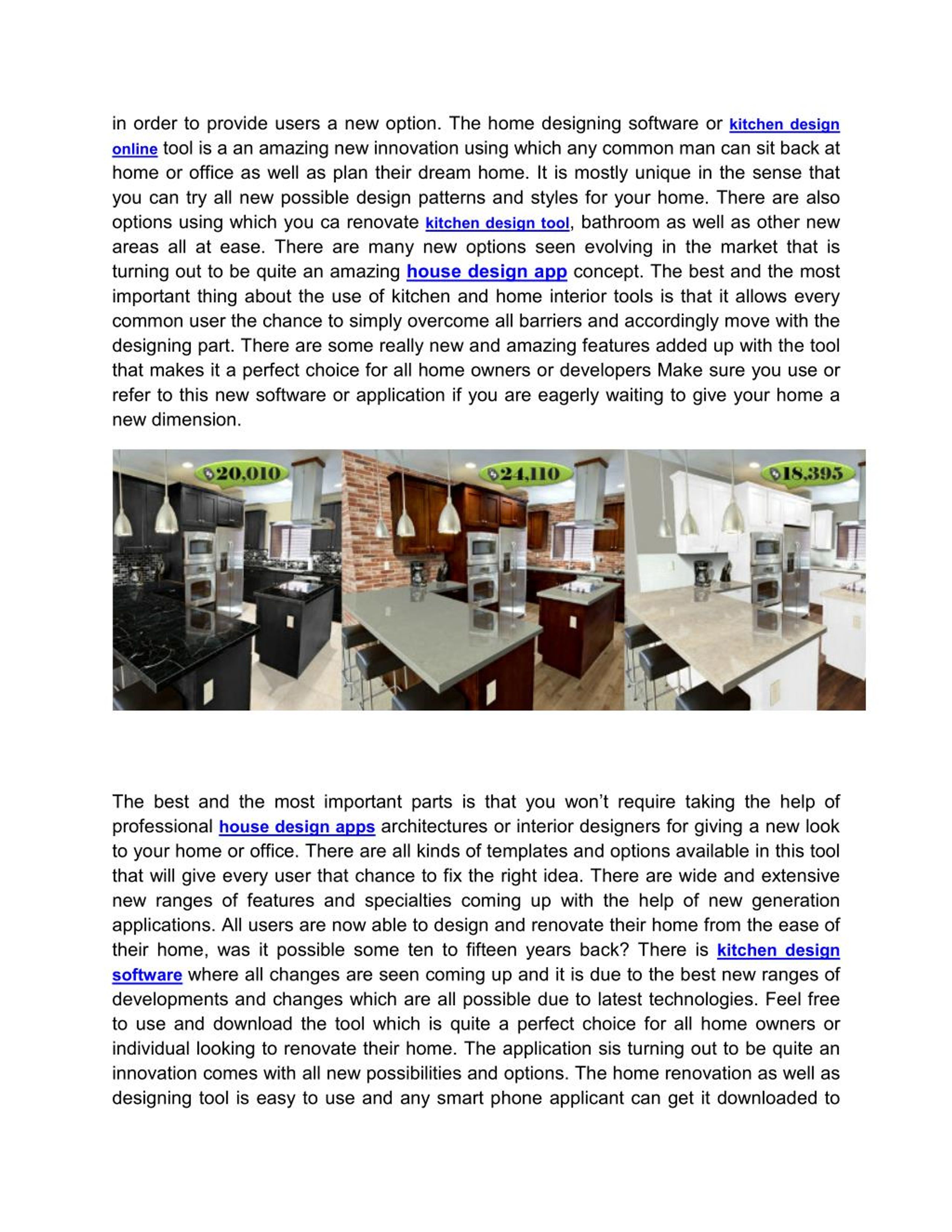Computer ► Software The all new ranges of house designing applications coming up Body There are different online kitchen design new software as well as applications coming up in the market all in the sense that new opportunities and services can be availed by common people. The most new in the list is the home designing or interior designing tool. There are some new and amazing ranges of applications coming up in the market that will help in giving every common individual the best possible solution. The time is changing and with that some serious new applications seems coming up in the market