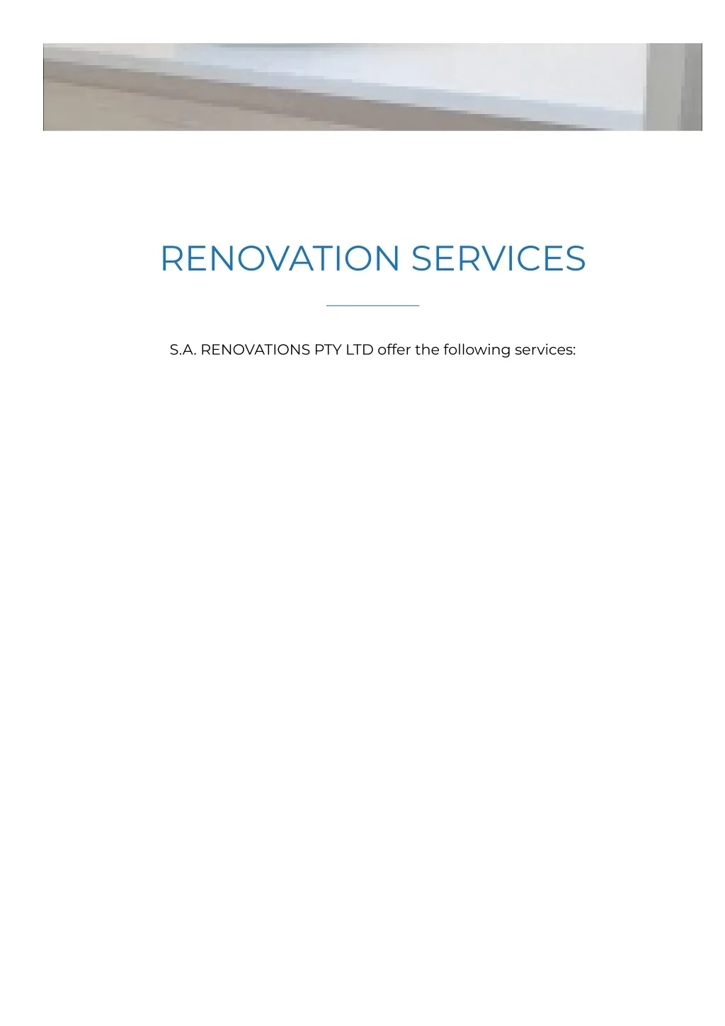 RENOVATION SERVICES S.A. RENOVATIONS PTY LTD offer the following services: